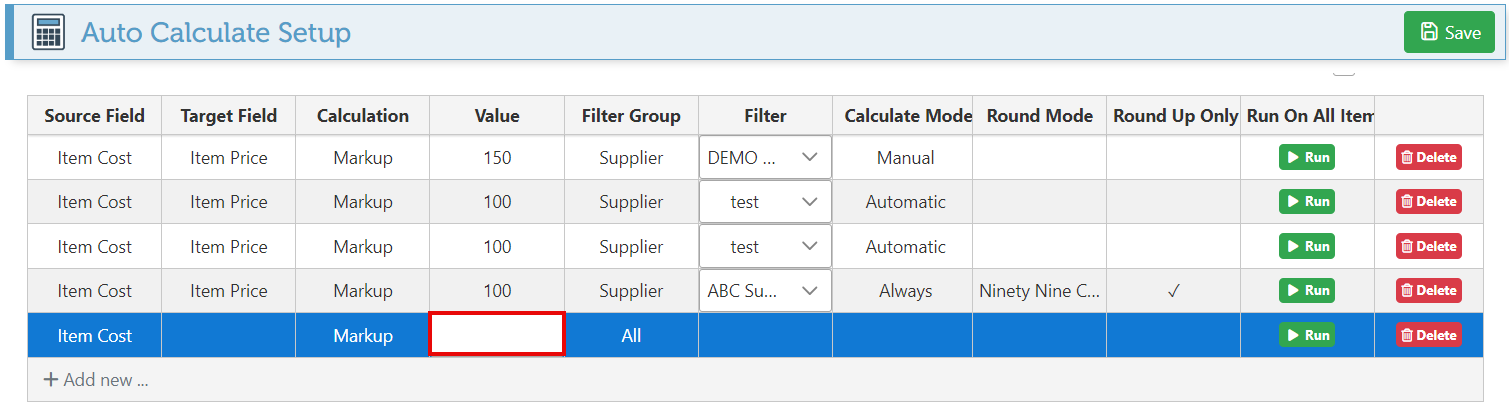 The auto-calculate feature is designed to perform a predetermined calculation without the need for manual intervention. It is designed to save time and effort by eliminating the need for repetitive manual calculations and is commonly used to calculate the item price based on a calculation automatically applied to the item cost.