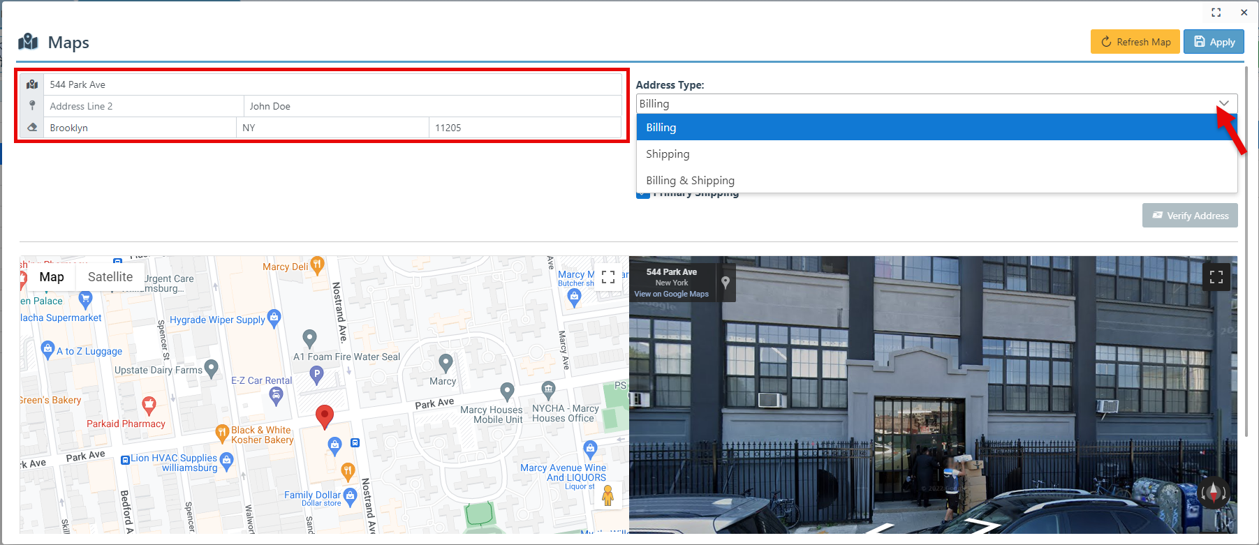 Enter the Customer Address and the Address Type (depending on whether the address is used for Billing, Shipping, or Both.)