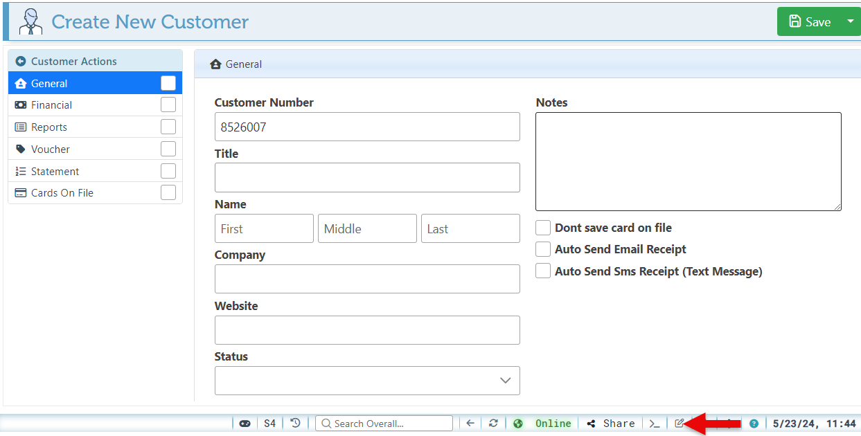 Click “Customer” in the Main Navigation menu, and select “Create Customer” from the dropdown.