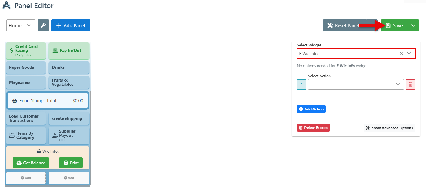 In the appearing button configuration fields, select “eWic Info” from the widget dropdown and click save.
