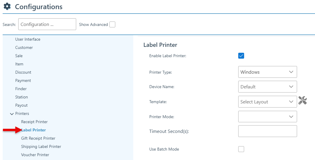 Select the “Enable Label Printer” checkbox to allow for a label printer connection.