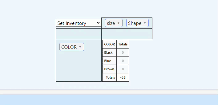 Navigate to the matrix grid section at the bottom of the page. The selected attributes will be displayed at the top of the grid. To add them to the matrix, click and drag the attributes to the column or row header.