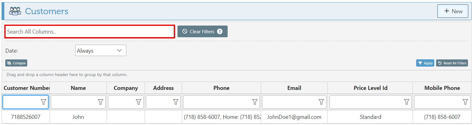 Search and select the relevant customer in the search bar.